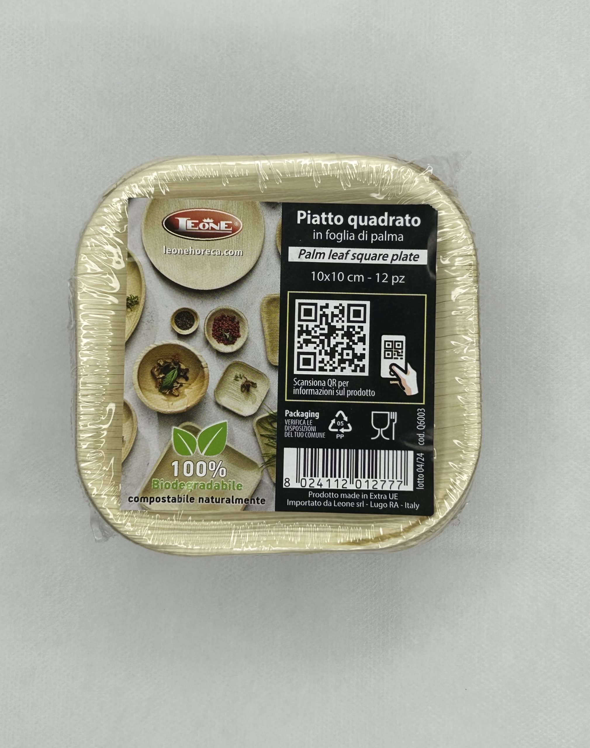 Piattino quadrato in foglia di palma mis.10x10 , quantità per confezione di 12 pz